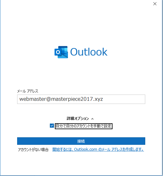 その際詳細オプションを開いて「自分で自分のアカウントを手動で設定」にチェックします。